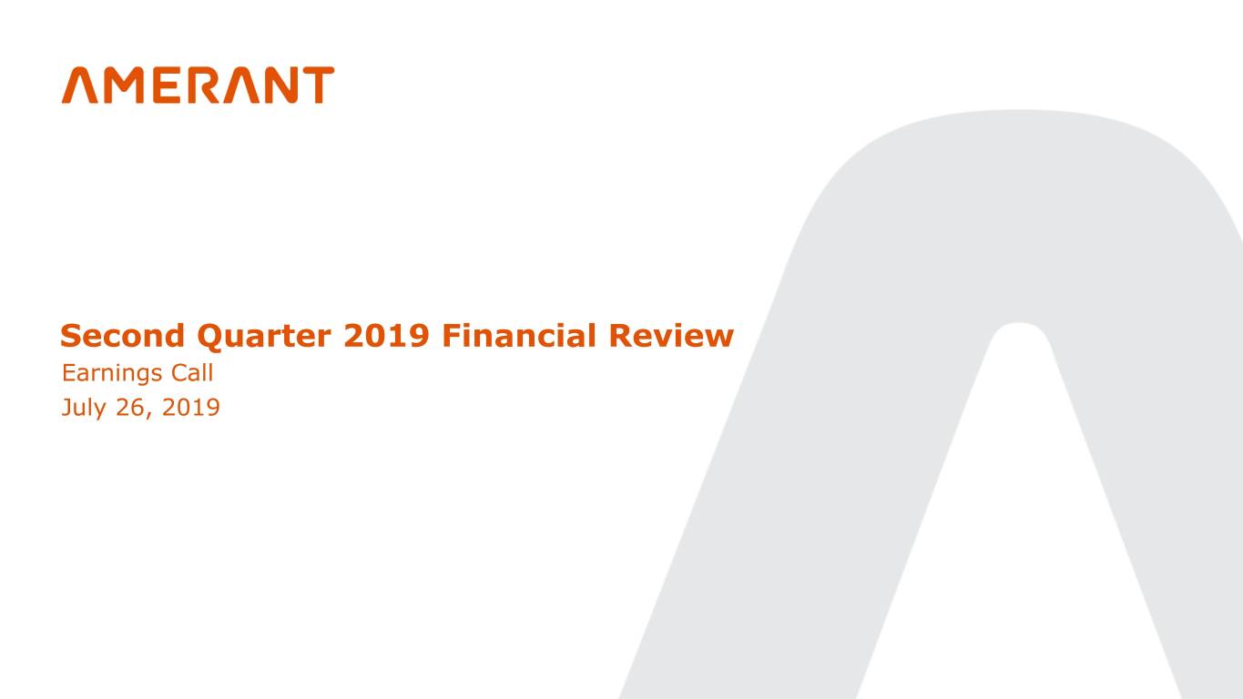 Second Quarter 2019 Financial Review Earnings Call July 26, 2019