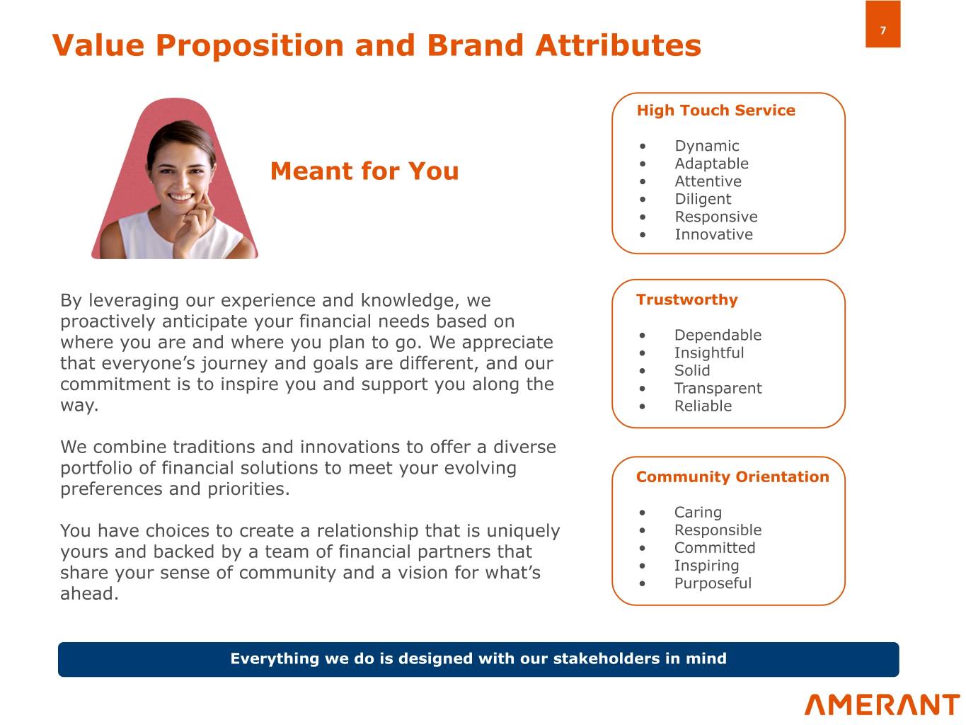 7 Value Proposition and Brand Attributes High Touch Service • Dynamic • Adaptable Meant for You • Attentive • Diligent • Responsive • Innovative By leveraging our experience and knowledge, we Trustworthy proactively anticipate your financial needs based on where you are and where you plan to go. We appreciate • Dependable • Insightful that everyone’s journey and goals are different, and our • Solid commitment is to inspire you and support you along the • Transparent way. • Reliable We combine traditions and innovations to offer a diverse portfolio of financial solutions to meet your evolving Community Orientation preferences and priorities. • Caring You have choices to create a relationship that is uniquely • Responsible yours and backed by a team of financial partners that • Committed share your sense of community and a vision for what’s • Inspiring • Purposeful ahead. Everything we do is designed with our stakeholders in mind
