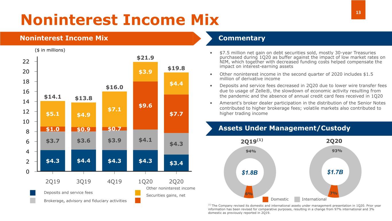 Appendix 1 30 Non-GAAP Financial Measures Reconciliations (cont’d) (1) Expenses incurred for actions designed to implement the Company’s strategy as a new independent company. These actions include, but are not limited to reductions in workforce, streamlining operational processes, rolling out the Amerant brand, implementation of new technology system applications, enhanced sales tools and training, expanded product offerings and improved customer analytics to identify opportunities. (2) As of June 30, 2020, March 31, 2020 and June 30, 2020 potential dilutive instruments consisted of unvested shares of restricted stock and restricted stock units mainly related to the Company’s IPO in 2018, totaling 491,360, 482,316 and 789,652, respectively. As of June 30, 2020, potential dilutive instruments were not included in the dilutive earnings per share computation because the Company reported a net loss and their inclusion would have an antidilutive effect. For all other periods presented, potential dilutive instruments were included in the diluted earnings per share computation because, when the unamortized deferred compensation cost related to these shares was divided by the average market price per share at those dates, fewer shares would have been purchased than restricted shares assumed issued. Therefore, at those dates, such awards resulted in higher diluted weighted average shares outstanding than basic weighted average shares outstanding, and had a dilutive effect in per share earnings.