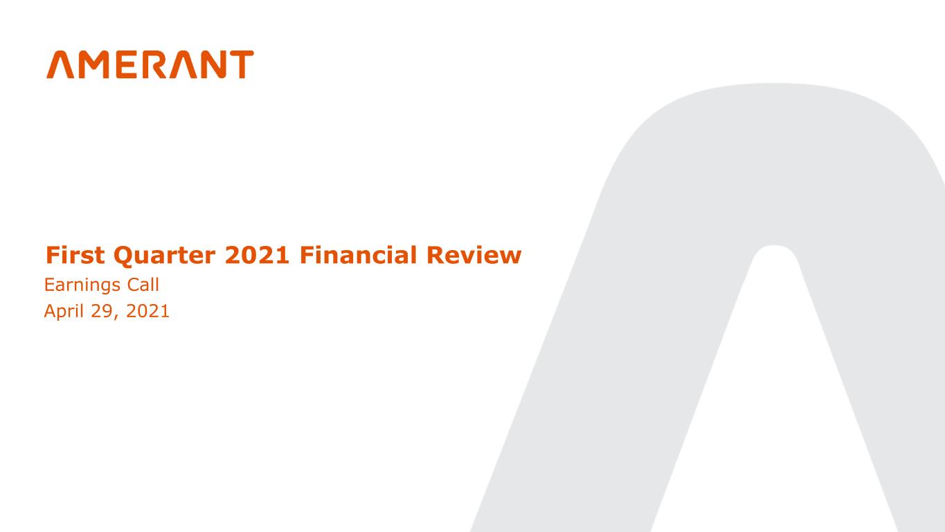 Earnings Call April 29, 2021 First Quarter 2021 Financial Review