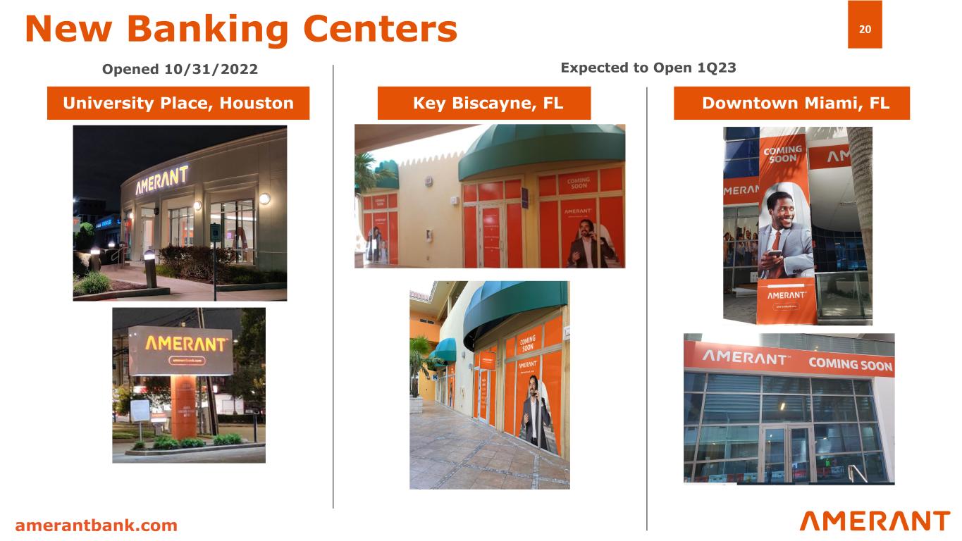 20 amerantbank.com New Banking Centers University Place, Houston Key Biscayne, FL Downtown Miami, FL Opened 10/31/2022 Expected to Open 1Q23