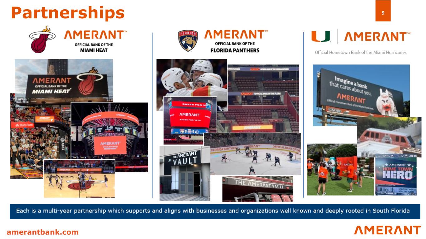 8 amerantbank.com New Banking Centers University Place, Houston Key Biscayne, FL Downtown Miami, FL Opened 10/31/2022 Expected to Open 2Q23 Expected to Open 3Q23