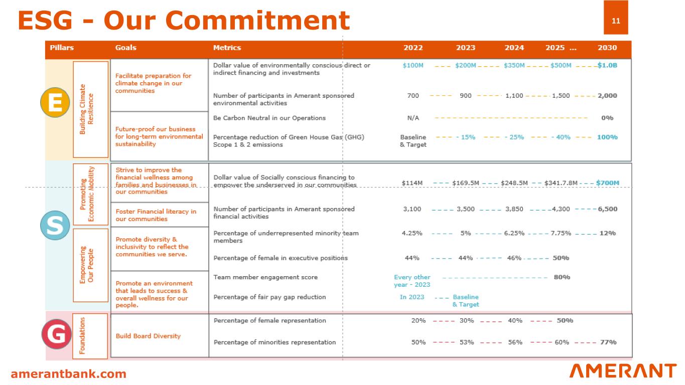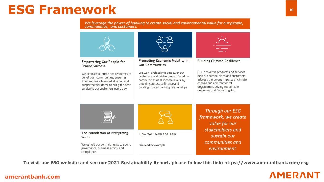 10 amerantbank.com ESG Framework To visit our ESG website and see our 2021 Sustainability Report, please follow this link: https://www.amerantbank.com/esg