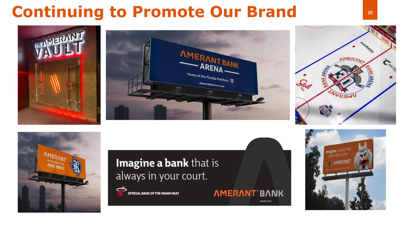 19Physical Transformation Update • Final two branch “refresh” locations to be completed before year end; five other locations completed YTD • This will complete the entire network - essential for “common look and feel” of Amerant experience for our team members and customers • New locations - in the Works: Downtown Miami, Las Olas (Downtown Ft. Lauderdale), Tampa and San Felipe / River Oaks (Houston) • Consolidation - Edgewater, FL location in 4Q with Downtown Miami opening • New regional headquarters in process – Broward County (Plantation) in 4Q23 and Tampa in 1Q24
