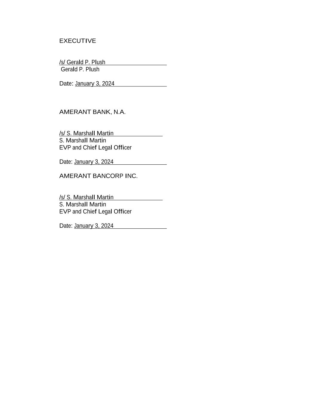 EXECUTIVE /s/ Gerald P. Plush Gerald P. Plush Date: January 3, 2024 AMERANT BANK, N.A. /s/ S. Marshall Martin S. Marshall Martin EVP and Chief Legal Officer Date: January 3, 2024 AMERANT BANCORP INC. /s/ S. Marshall Martin S. Marshall Martin EVP and Chief Legal Officer Date: January 3, 2024