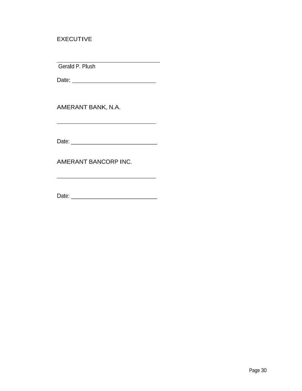 Page 30 EXECUTIVE Gerald P. Plush Date: AMERANT BANK, N.A. Date: _____________________________ AMERANT BANCORP INC. Date: _____________________________