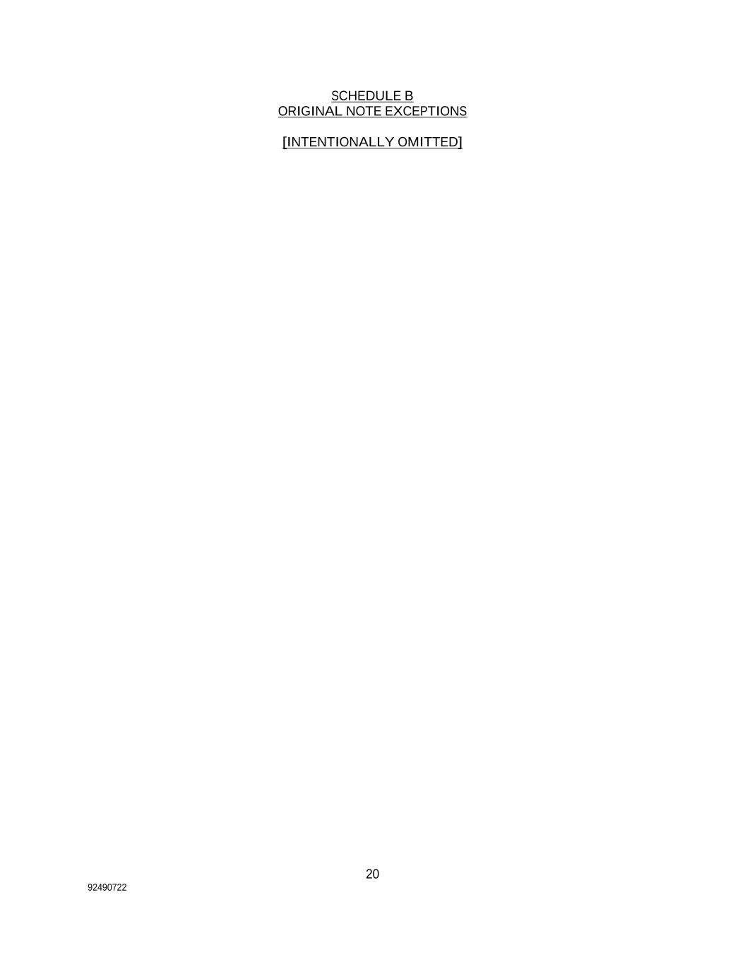20 92490722 SCHEDULE B ORIGINAL NOTE EXCEPTIONS [INTENTIONALLY OMITTED]