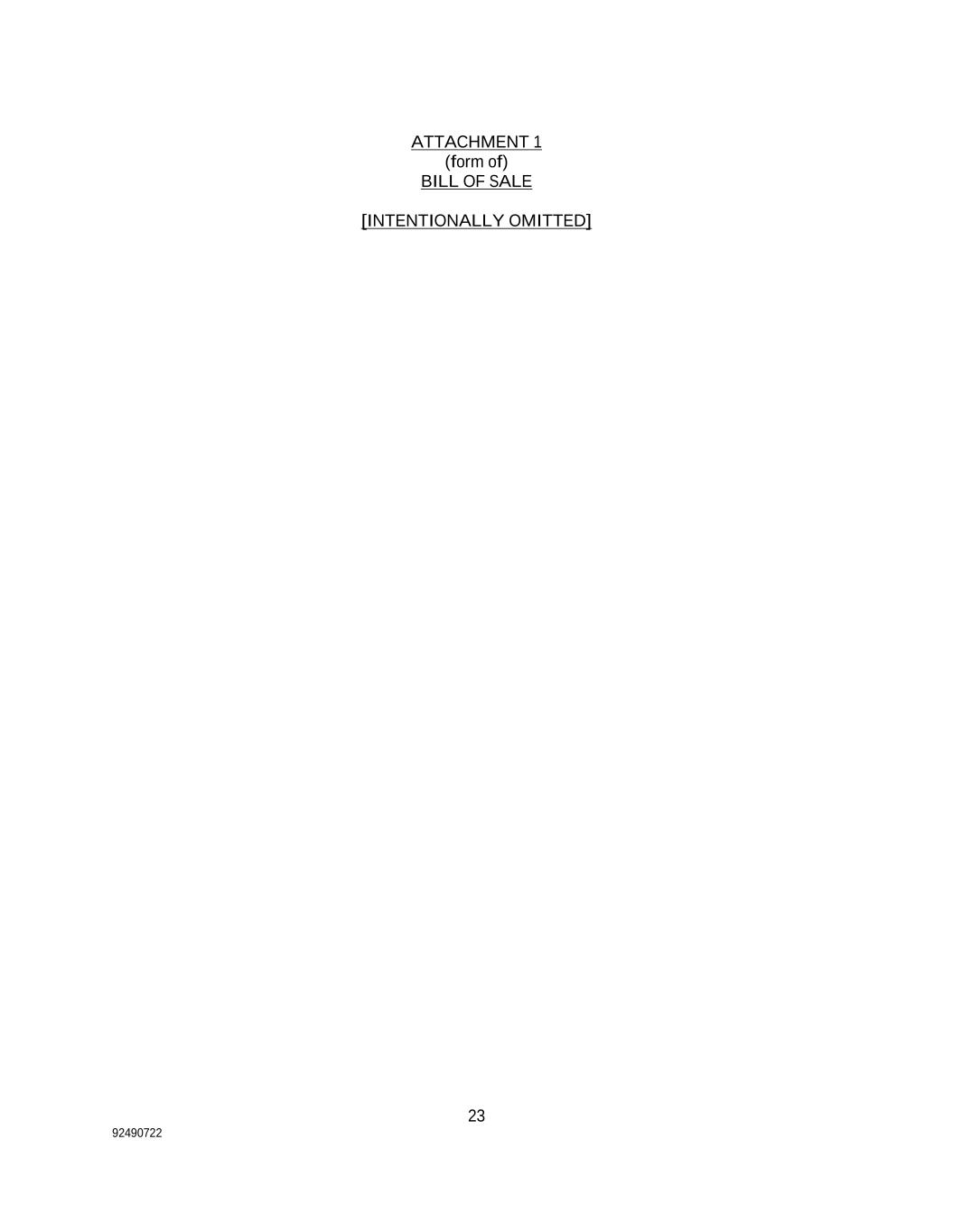 23 92490722 ATTACHMENT 1 (form of) BILL OF SALE [INTENTIONALLY OMITTED]