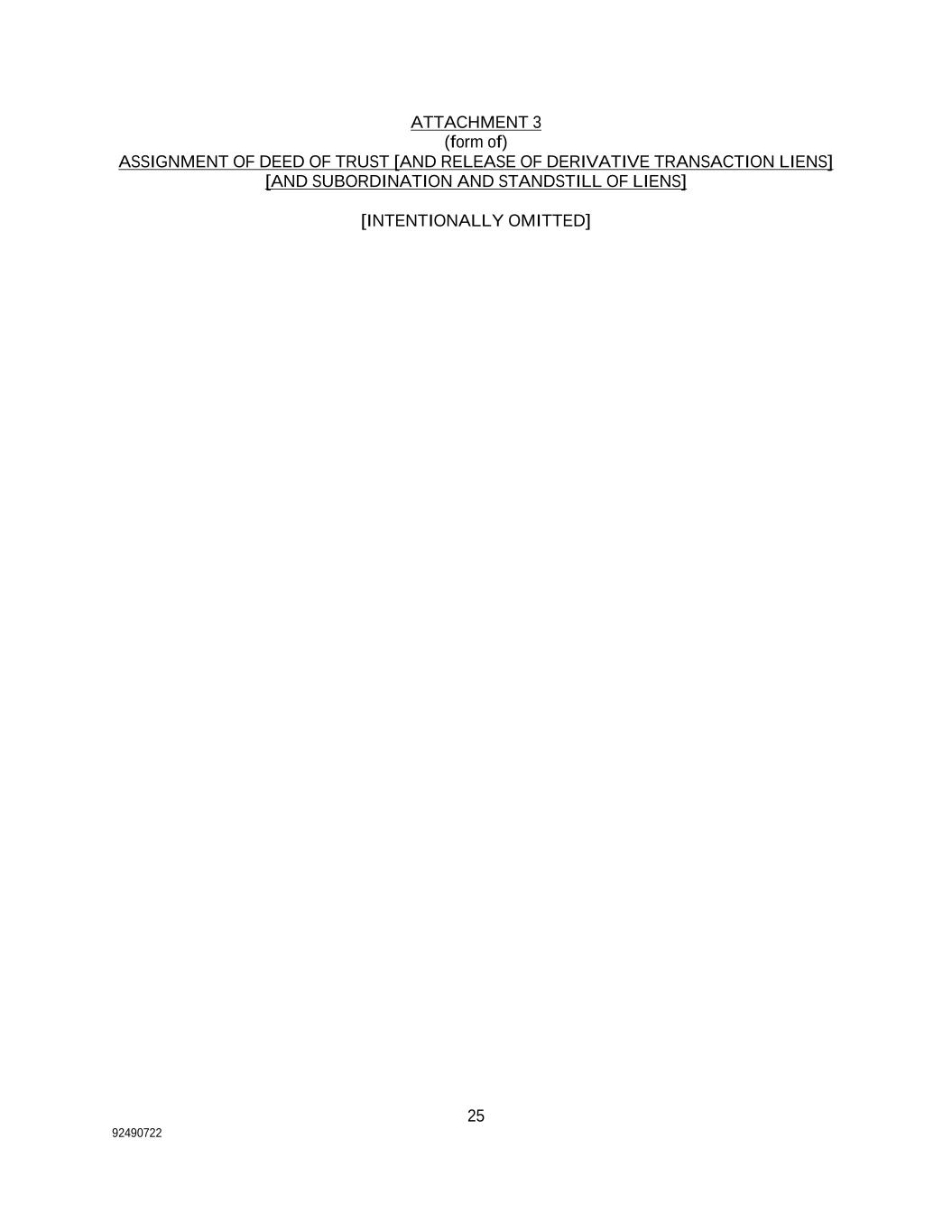 25 92490722 ATTACHMENT 3 (form of) ASSIGNMENT OF DEED OF TRUST [AND RELEASE OF DERIVATIVE TRANSACTION LIENS] [AND SUBORDINATION AND STANDSTILL OF LIENS] [INTENTIONALLY OMITTED]