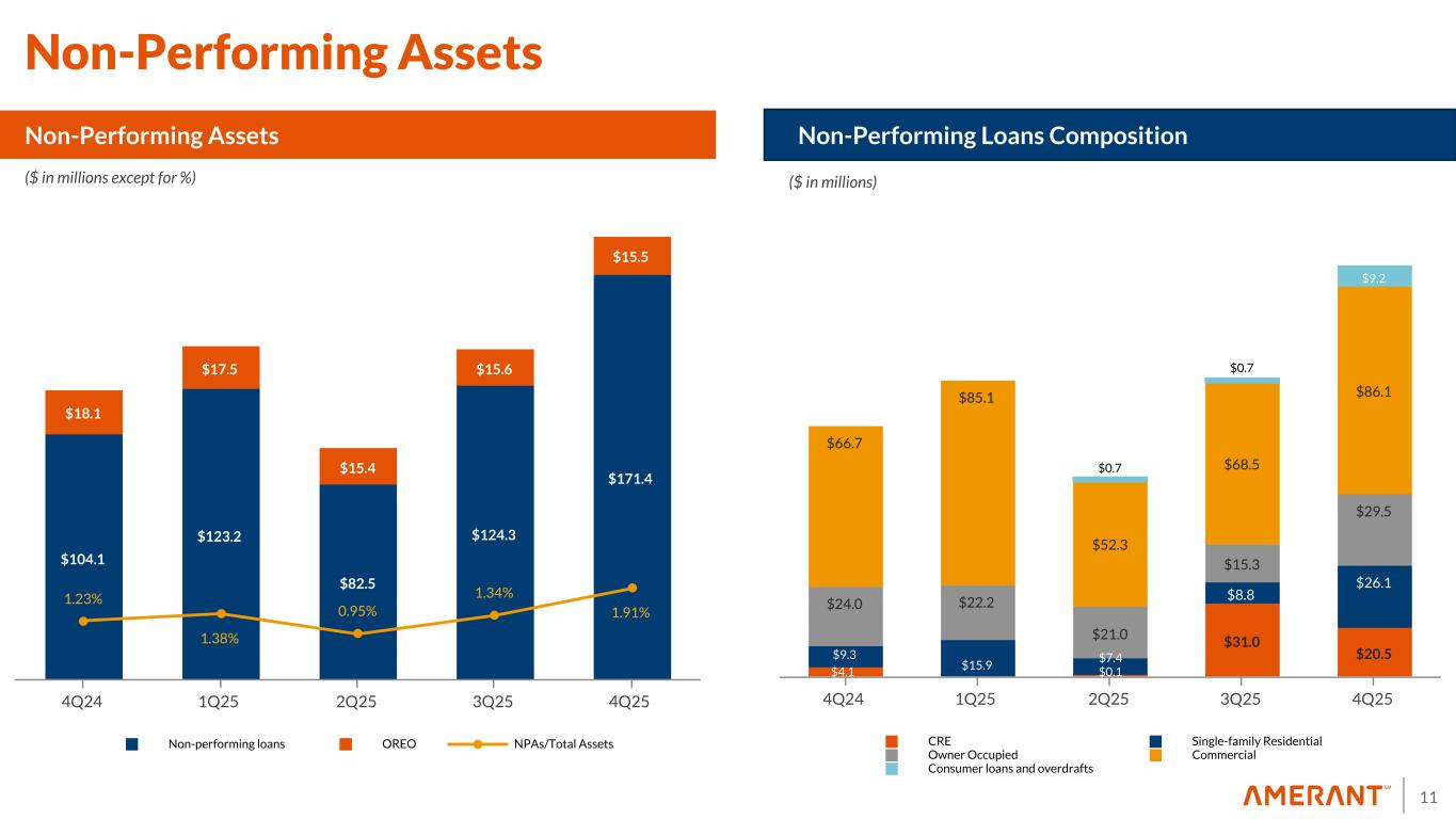 29 $83.4 $71.6 $74.4 $77.8 $106.8 $35.3 $33.3 $36.0 $35.1 $38.8 $48.1 $38.3 $38.4 $42.7 $68.0 698 726 692 704 694 4Q24 1Q25 2Q25 3Q25 4Q25 0 30 60 90 120 Non-Interest Expense Mix ($ in millions, except for FTEs) Non-core Noninterest Expenses $15.1 $0.5 $1.2 $2.0 $29.2 $2.5 $1.1 $3.1 $12.6 $0.9 $14.8 $7.5 $3.8 Other non-core noninterest expenses (1) Losses on loans held for sale carried at the lower of cost or fair value Contract termination costs Staff separation costs 4Q24 1Q25 2Q25 3Q25 4Q25 0 10 20 30 40 ($ in millions) Non-Interest Expense Salaries and employee benefits Other operating expenses FTEs (1) This includes impairment charges on investments carried at cost included in other assets, goodwill and intangible asset impairments and previously separately disclosed for Amerant Mortgage downsizing, and loss on sale of repossessed assets and other real estate owned valuation expenses.